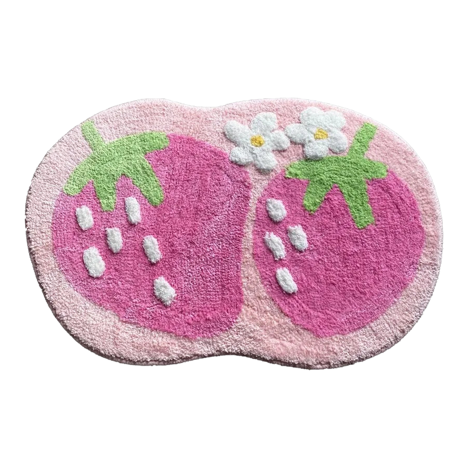 Zwei saftige Erdbeeren chillen auf deinem Boden und flüstern: „Lass alles hinter dir und sei einfach süß.“